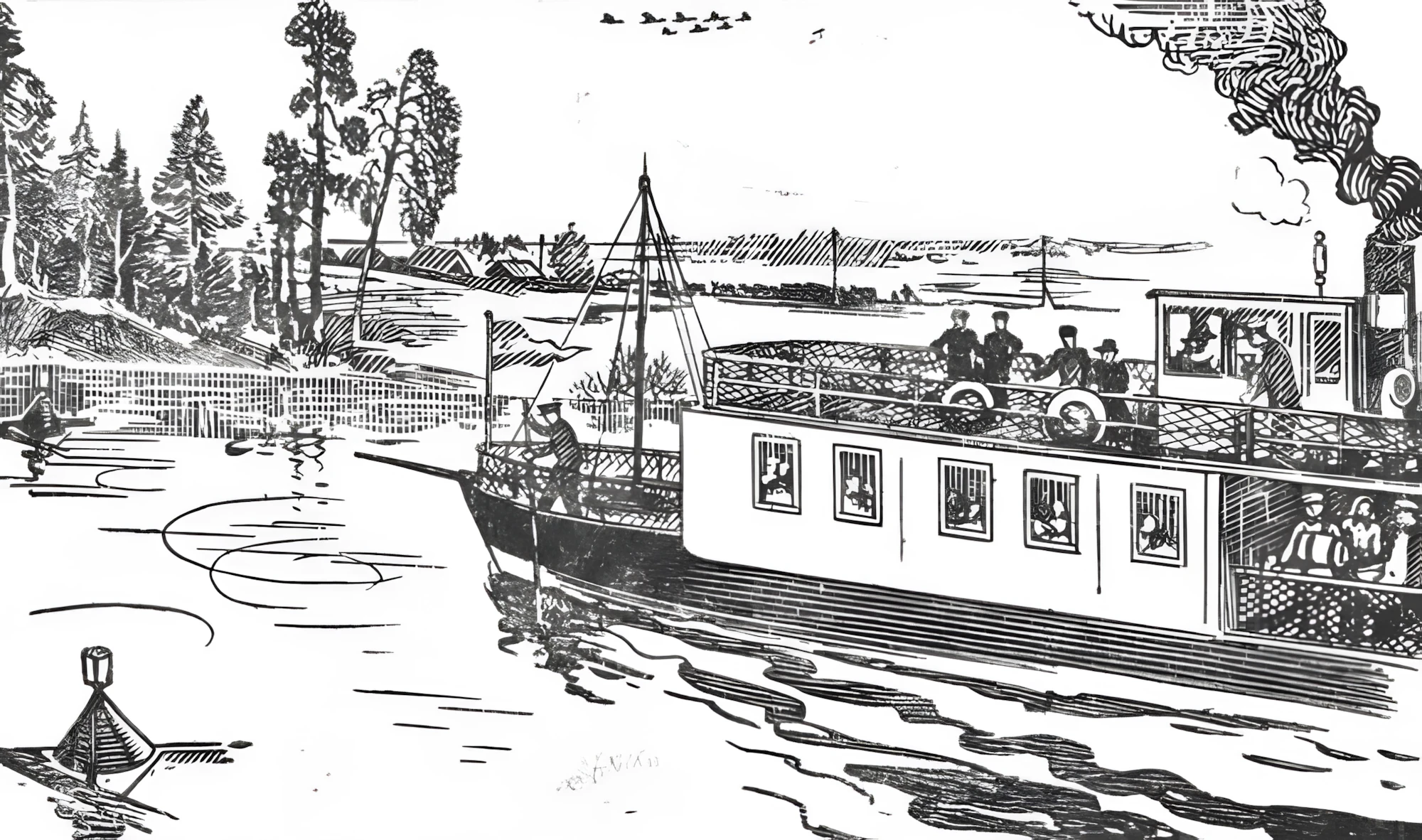 - Река в этом месте мелка: матрос, стоя на носу парохода, шестом измеряет глубину фарватера.