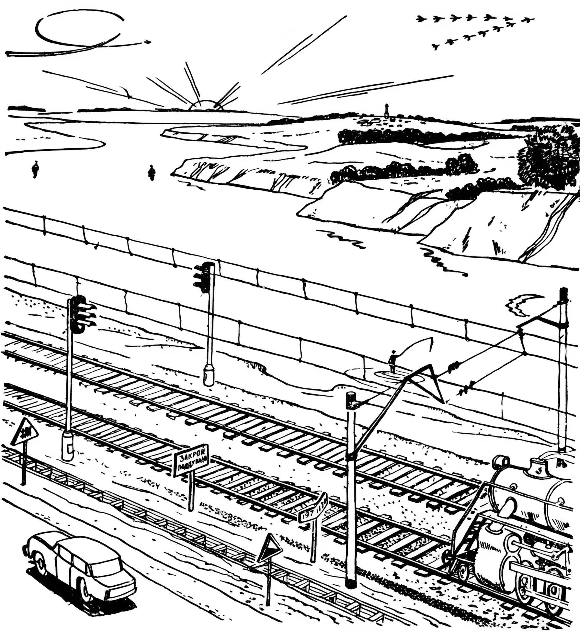 - К лодке направляется проводник-железнодорожник с фонарем; он, очевидно, живет где-то поблизости от станции.